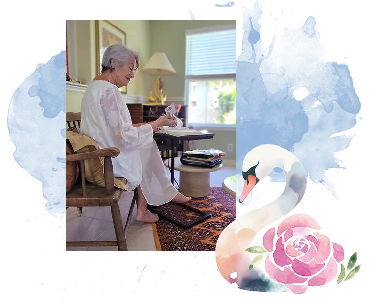 After seven decades of surviving the ‘Self Trinity of Me, Myself and I,’ my heart, mind and soul accepted the love of God. In 2020, a reunion with my friend, Lynn Rose Curtin, a musician in her own right, brought about a new endeavor of songwriting. These days, I delight in the life of service through Swan White Rose Ministry.